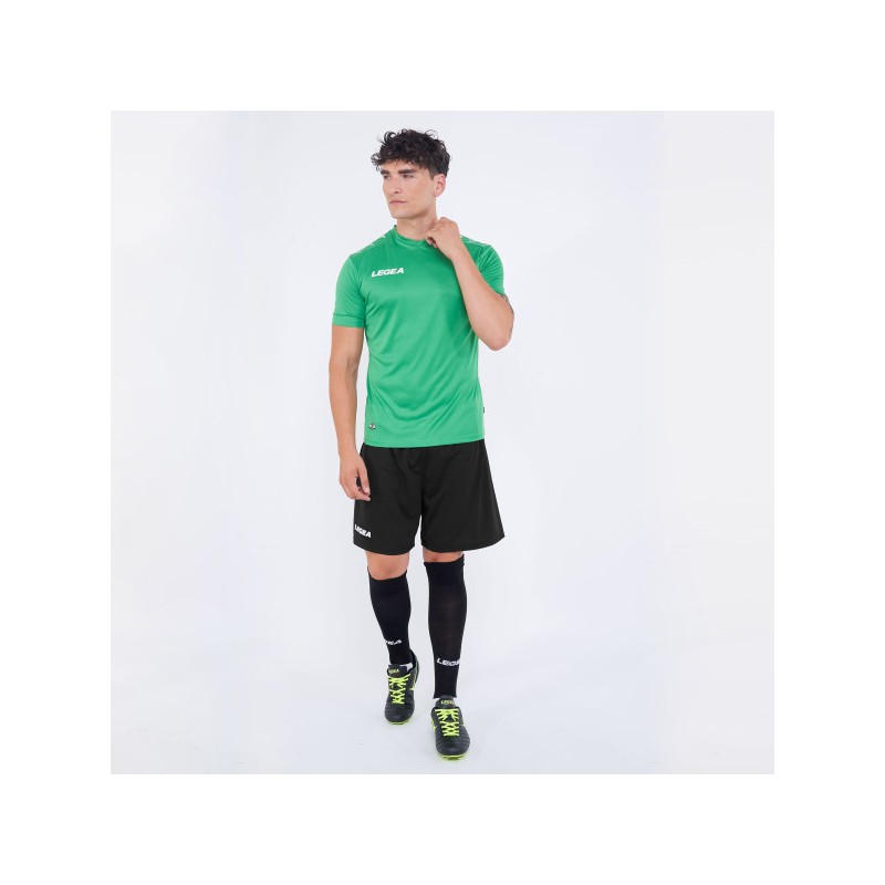Setul cu tricou și pantaloni scurți modelul Monaco este fabricat din țesătură de poliester 100%, care garantează o respirabilitate excelentă. Modelul prezentat este executat din poliester pentru îmbrăcăminte profesională. Acest material este renumit pentru abilitatea sa de a evacua în timp umezeala și a lăsa aerul să treacă, menținând pielea uscată la un nivel confortabil de temperatură.